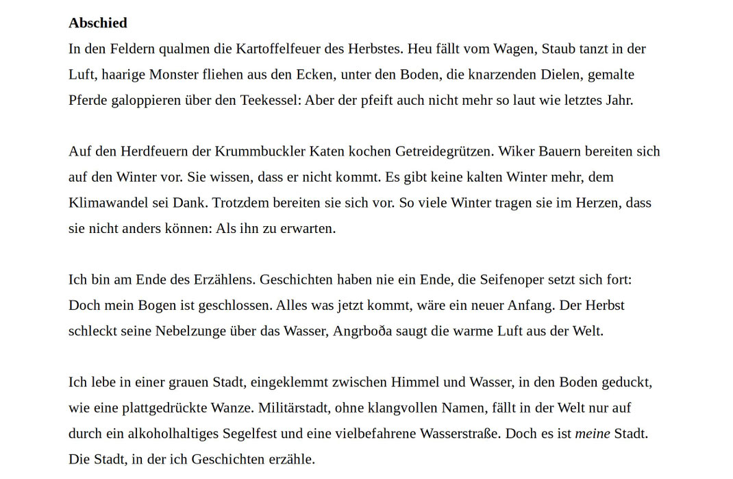 Wir zitieren und samplen zahlreiche Fremdtexte: Historische Reiseberichte, wissenschaftliche Fachtexte, Reden, Gedichte & Songtexte. Historische Quellen belassen wir oft in altertümlicher