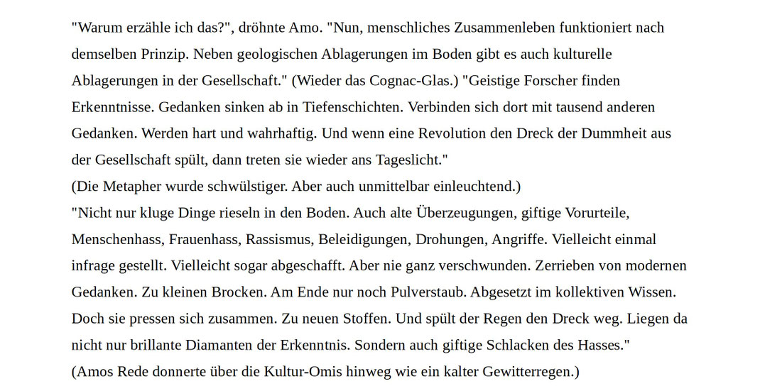 Das Buch ist nicht in einem durchlaufenden Blocktext verfasst, sondern in kurzen, episodischen Kapiteln und Mikro-Geschichten, jede für sich klar umrissen und gut zu lesen. Die sich aber zu